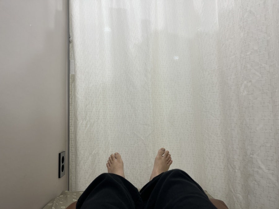 의사 선생님께서 슬리퍼도 신으면 안된다고 하셨다.